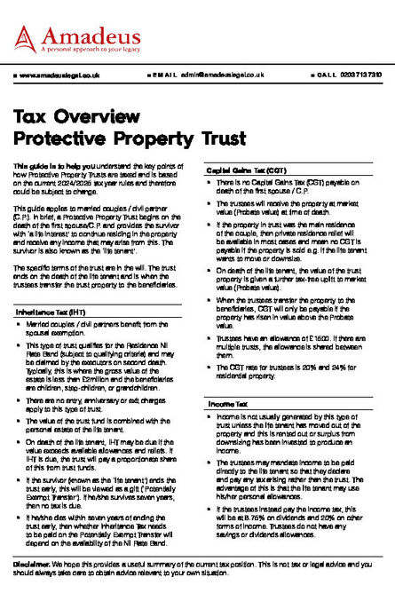 The key points of how Protective Property Trusts are taxed.